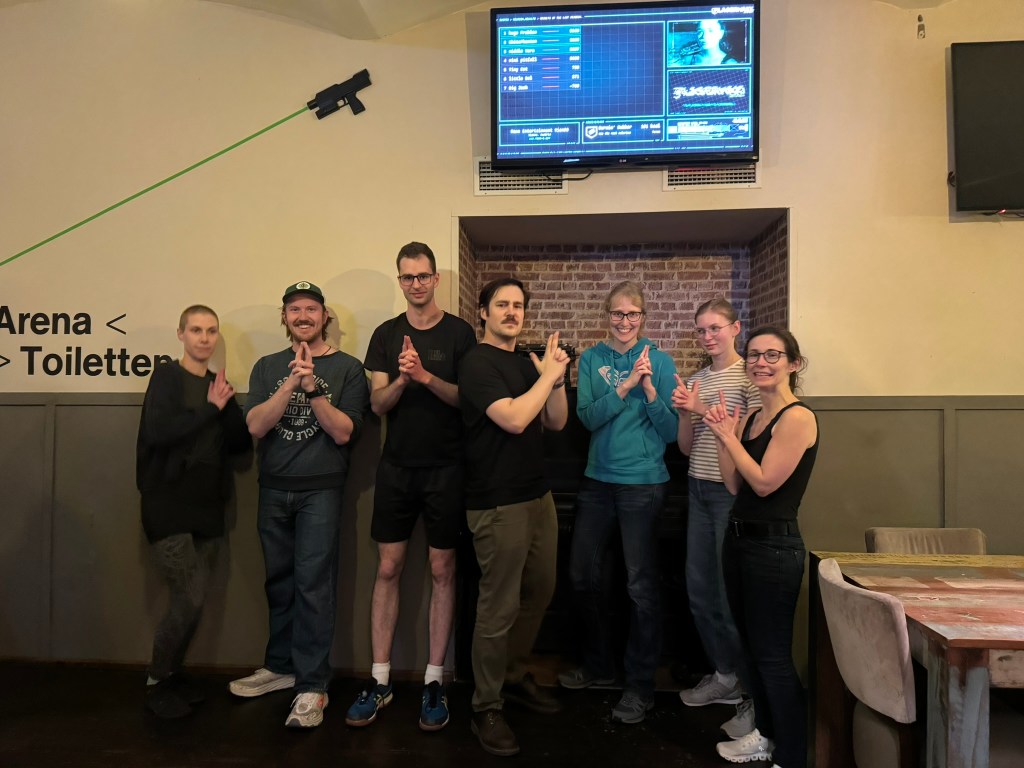 Group outing to Laser Tag, where Vojta absolutely dominated the whole team.