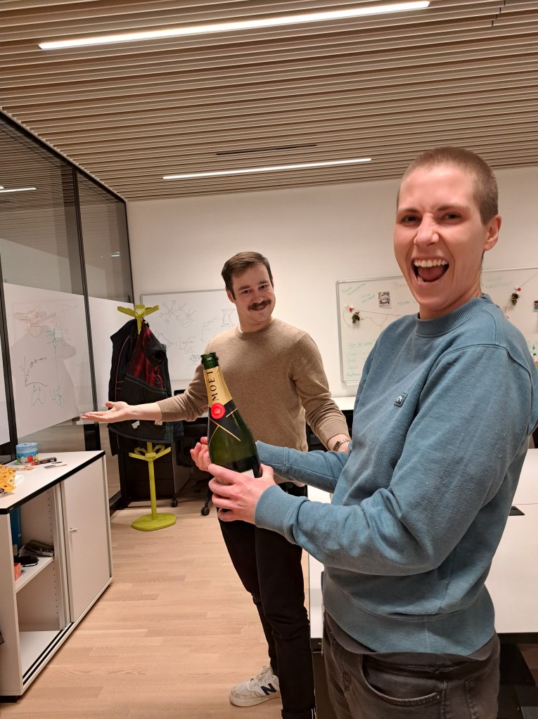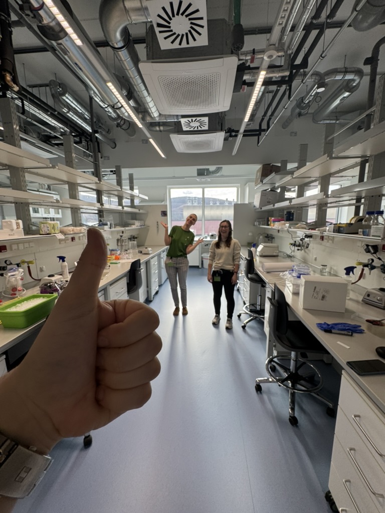 1st birthday of the group! We celebrated by having lunch at Redlingerhütte in the nearby woods, with our new intern Viktoras & visiting student Grazia from the Blokesch lab at EPFL. Vanessa also made a friend.